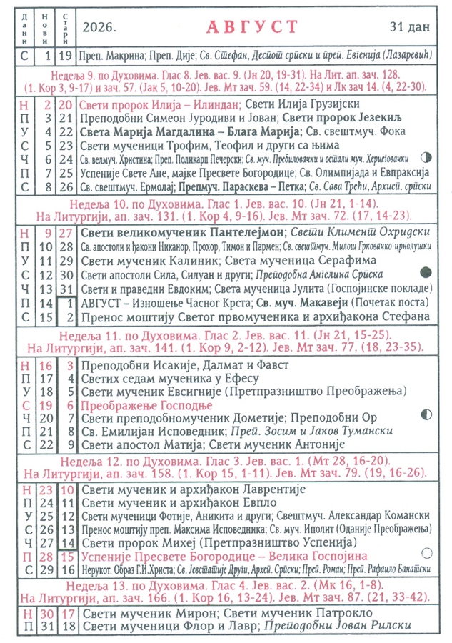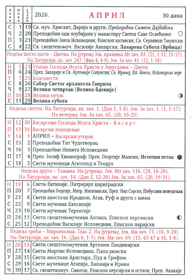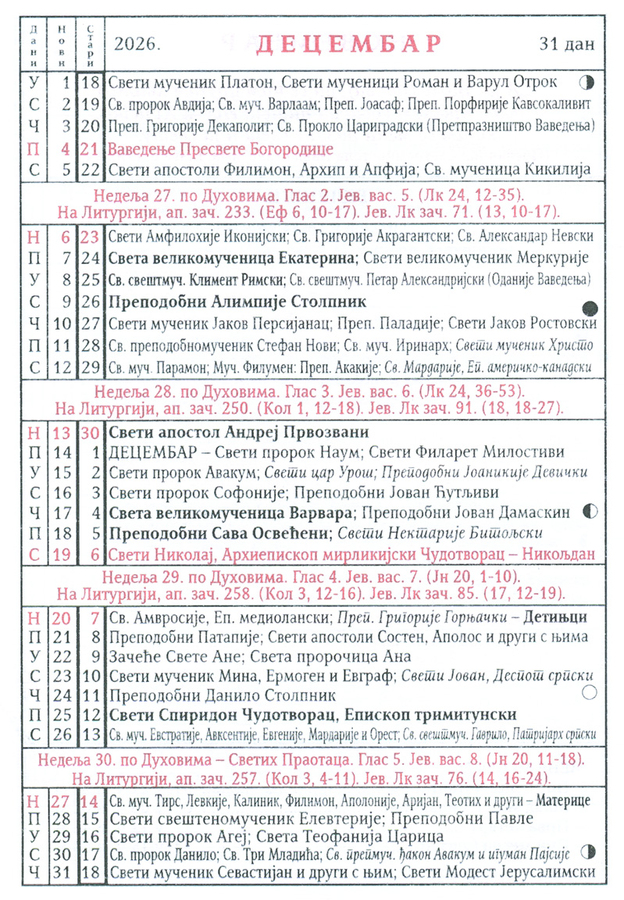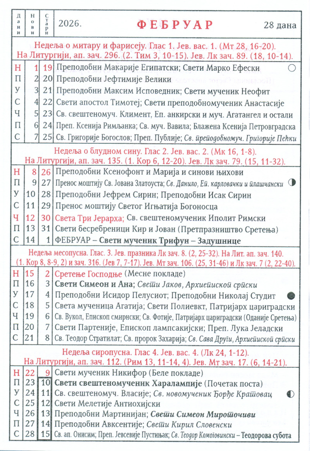 КАЛЕНДАР 2026